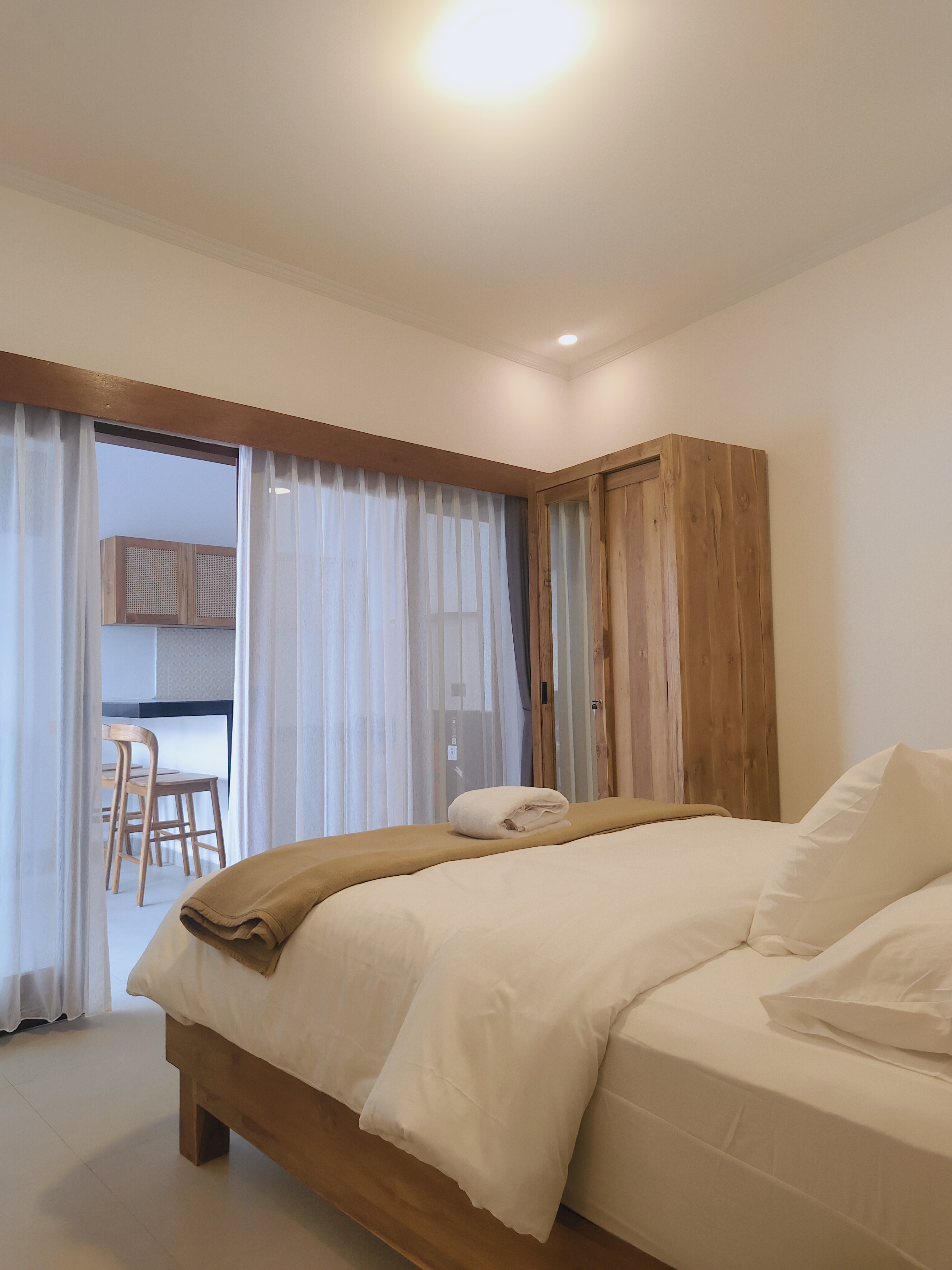This modern villa offers a perfect blend of comfort and style, featuring three spacious bedrooms and three bathrooms, two of which include bathtubs for added relaxation. The interiors are designed with a warm natural touch, showcasing wooden furniture, high ceilings, and large windows that invite plenty of natural light. A fully equipped kitchen and open-plan living area create a welcoming space for everyday living. Step outside to enjoy your private pool or head up to the rooftop with a gazebo, ideal for entertaining or simply taking in the views. The villa comes fully furnished, complete with reliable WiFi and the convenience of being cleaned twice a week, ensuring a hassle-free lifestyle. Whether for living or investment, this property combines modern amenities with tropical charm.